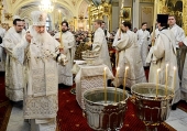 В праздник Крещения Господня Предстоятель Русской Церкви совершил Литургию и чин великого освящения воды в Богоявленском кафедральном соборе г. Москвы