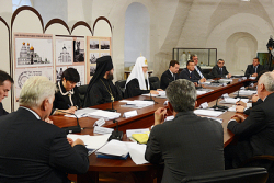 Святейший Патриарх Кирилл и председатель Правительства РФ Д.А. Медведев провели очередное заседание Попечительского совета фонда по восстановлению Ново-Иерусалимского монастыря