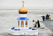 Святейший Патриарх Кирилл освятил плавучую часовню-маяк на месте слияния рек Иртыша и Оби