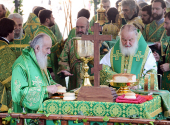 В праздник обретения мощей преподобного Сергия Радонежского Предстоятели Русской и Сербской Православных Церквей совершили Литургию на Соборной площади Троице-Сергиевой лавры