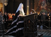 Святейший Патриарх Кирилл совершил вечерню с чином прощения в Храме Христа Спасителя
