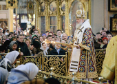 В праздник Иверской иконы Божией Матери и день памяти святителя Алексия Московского Предстоятель Русской Церкви совершил Литургию в Богоявленском соборе г. Москвы