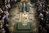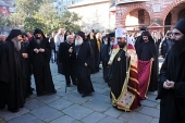 В праздник Сретения Господня митрополит Волоколамский Иларион совершил Божественную литургию в афонском монастыре Ватопед