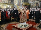 В праздник Собора новомучеников и исповедников Церкви Русской Святейший Патриарх Кирилл совершил Литургию в Успенском соборе Московского Кремля