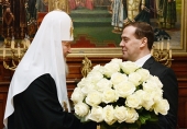 Председатель Правительства РФ Д.А. Медведев поздравил Святейшего Патриарха Кирилла с пятилетием интронизации