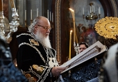 В Великий четверг Предстоятель Русской Церкви совершил Литургию и чин освящения мира в Храме Христа Спасителя в Москве