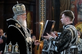 Святейший Патриарх Кирилл совершил утреню Великого пятка с чтением двенадцати Страстных Евангелий
