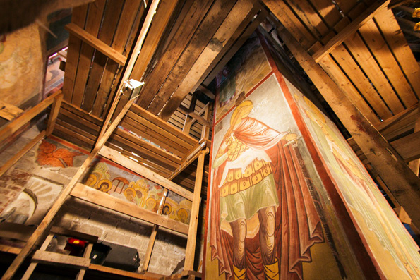 Посоветовавшись со специалистами, мы договорились сосредоточиться на них. И мы попали в точку! Интересной особенностью фресок являются изображения редчайших художественных образов и прежде всего святого Христофора — избавителя от эпидемий, принявшего христианство и обезглавленного в дальнейшем за приверженность к вере языческим царем. Это уникальное изображение, где Христофор показан с лошадиной головой в отличие от других его изображений в храмах Западной Европы (там с пёсьей головой). Кроме того, это единственное сохранившееся изображение. В российских церквях изображения Христофора повсеместно уничтожены.