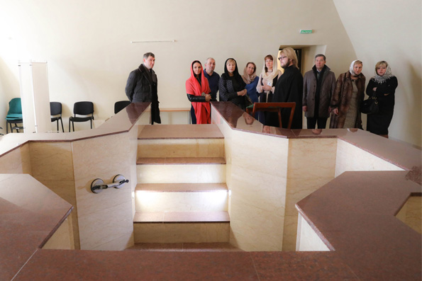 Начался визит с посещения Духосошественского храма, расположенного рядом с гимназией. Здесь гости ознакомились с его историей и отреставрированным интерьером.