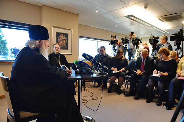Перед отлетом Предстоятель Русской Церкви ответил на вопросы представителей российских и зарубежных СМИ.