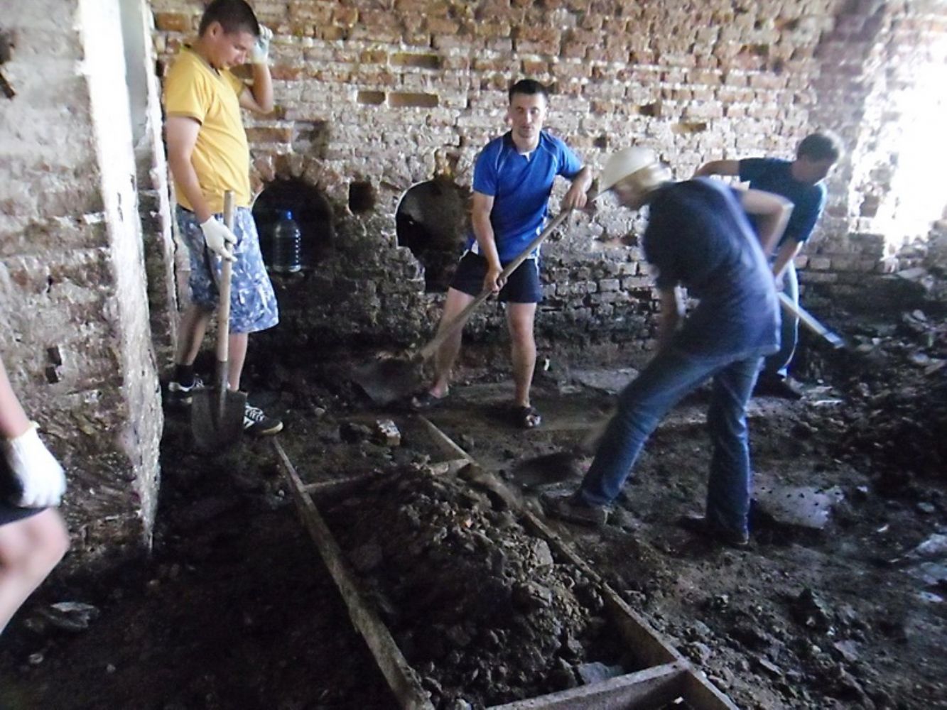 Мы здесь, чтобы очистить это святое место от накопившейся грязи. Насколько это возможно. Невольно возникает аллегория. Заброшенный храм – душа грешника, которая с годами покрывается толстым слоем греха-навоза. Источником навоза-греха тут служит скот, в душе человека страсти и пороки. Во время работы мы многократно выгоняли овец и коров из храма, но они непрестанно стремились вернуться. Так и в душу человеческую, за время земной жизни, возвращаются, как в своё насиженное место пороки и страсти. Но с помощью Божией всё преодолимо. Сорокасантиметро