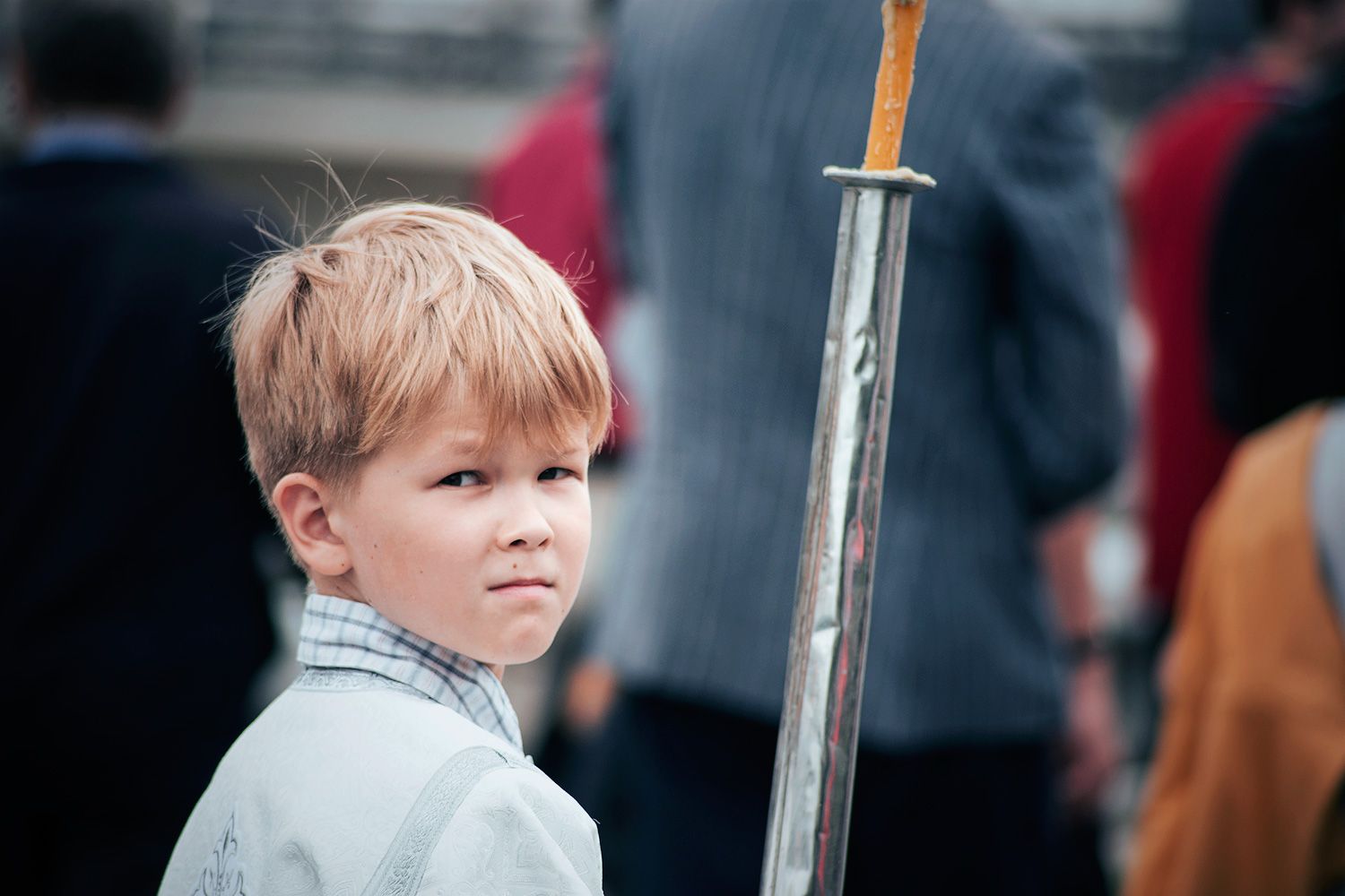 Посмотрите, наши собратья, бок о бок живущие с нами, — они все в мечети, особенно мужчины, вот недавно был праздник замечательный, святой для мусульман. А где наши мужчины? Вы что, забыли, что вера — это не удел стариков и старух, вера — этот дело сильных. Александр Невский, Димитрий Донской, преподобный Сергий Радонежский, святитель Ермоген, отдавший жизнь за Россию, Минин и Пожарский, с верою шедшие защищать Россию — это что, слабые люди? Нет. Веру всегда хранили и защищали не только женщины, но в первую очередь мужчины.