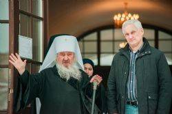 В Крестовоздвиженском соборе обители Андрей Белоусов поклонился чудотворному списку Казанской иконы Божией Матери. На молитвенную память глава митрополии вручил Андрею Рэмовичу Казанскую икону Богородицы и книгу об этой великой святыне Православия.