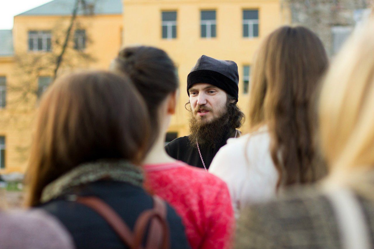 В один из дней на Светлой седмице, когда православная молодежь Казани собирается в клубе «Азбука» на Карла Маркса, 7, ребята отправилась в Казанско-Богородицкий монастырь. Здесь их встретил отец Харлампий, который поздравил ребят с праздником праздников — Пасхой Христовой, и поведал удивительную историю обители. Некоторые гости впервые услышали, а кто-то освежил в памяти события далекого 1579 года, когда после страшного пожара сама Богородица трижды явилась во сне девочке Матроне, повелевая идти на пепелище и обрести Ее образ. Матрона рассказала матери, она — архиепископу Иеремии, в итоге 8 июля 1579 икона была обретена, а на этом месте построен монастырь.
