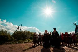 У храма архипастыря встретили настоятель протоиерей Валерий Моисеев с прихожанами. Владыка, приветствуя православных местных жителей, раздал иконки Казанского образа Богородицы.