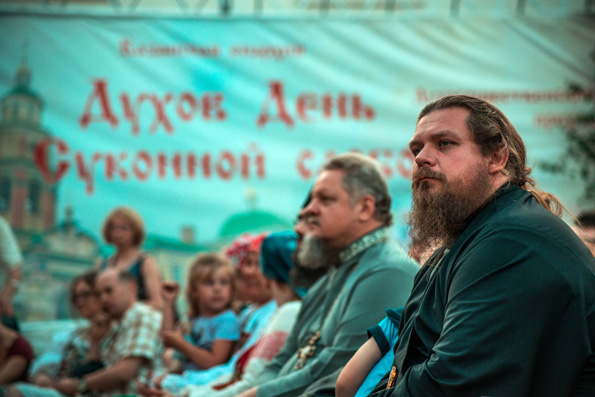 По окончании занятий все отправились на вечернее богослужение, а когда завершилась соборная молитва — на праздничный концерт «Духов день в Суконной слободе». Секретарь Казанского епархиального управления протоиерей Владимир Самойленко, настоятель Свято-Введенского Кизического монастыря города Казани игумен Пимен (Ивентьев), багочинный I Казанского округа протоиерей Алексий Чубаков, администрация и ученики православной гимназии имени святителя Гурия Казанского, православная молодежь, прихожане и гости праздника на несколько часов погрузились в удивительный мир народной культуры.