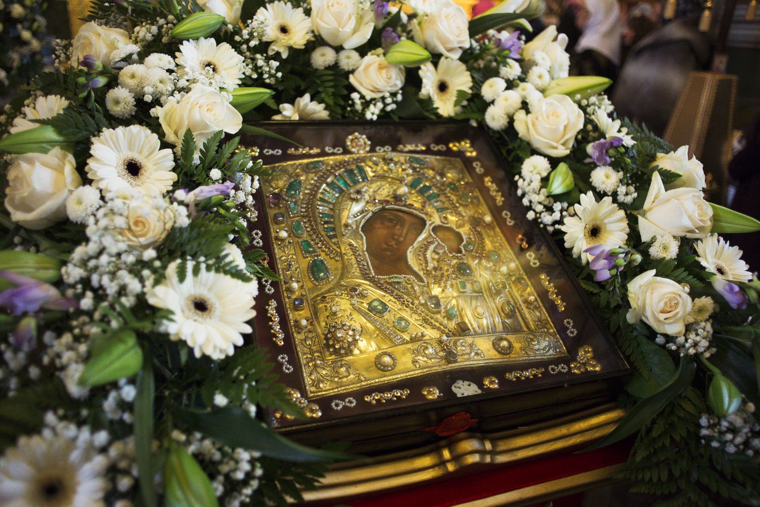 Из Богородицкого мужского монастыря специально на богослужение был доставлен почитаемый Казанский образ Пресвятой Девы Марии.