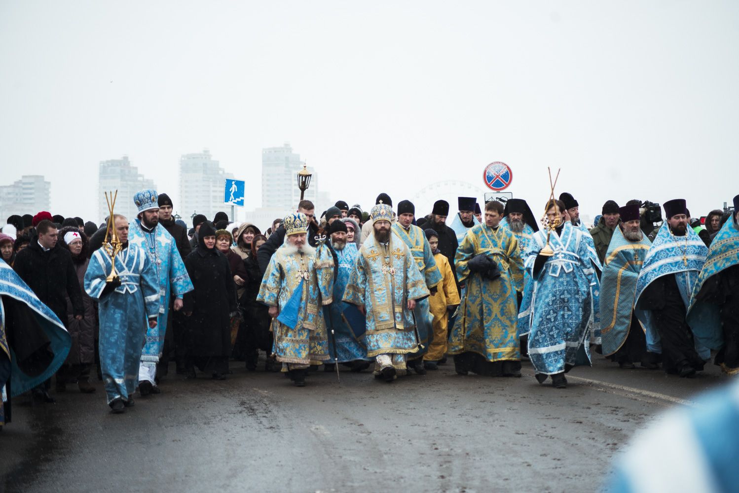 По завершении Литургии верующие с чудотворной Казанской иконой Божией Матери, с пением молитвословий проследовали крестным ходом от Казанского кремля к месту обретения святого образа. Иконы на многотысячном шествии под колокольный звон градских храмов несли курсанты танкового училища. У стен Крестовоздвиженского собора Казанско-Богородицкого монастыря духовенством было отслужено молебное пение Пречистой Деве.