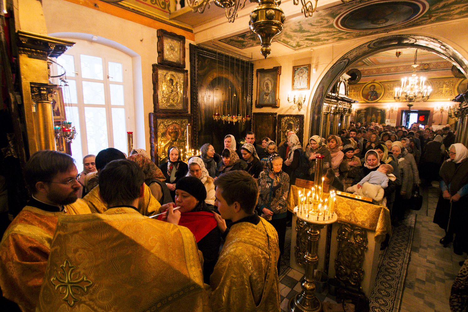 За Литургией была возглашена заупокойная сугубая ектения с поминовением архиепископа Казанского и Чистопольского Сергия (Королева), преставление которого отмечалось в этот день. По запричастном стихе проповедь произнес иерей Глеб Кривошеин.