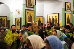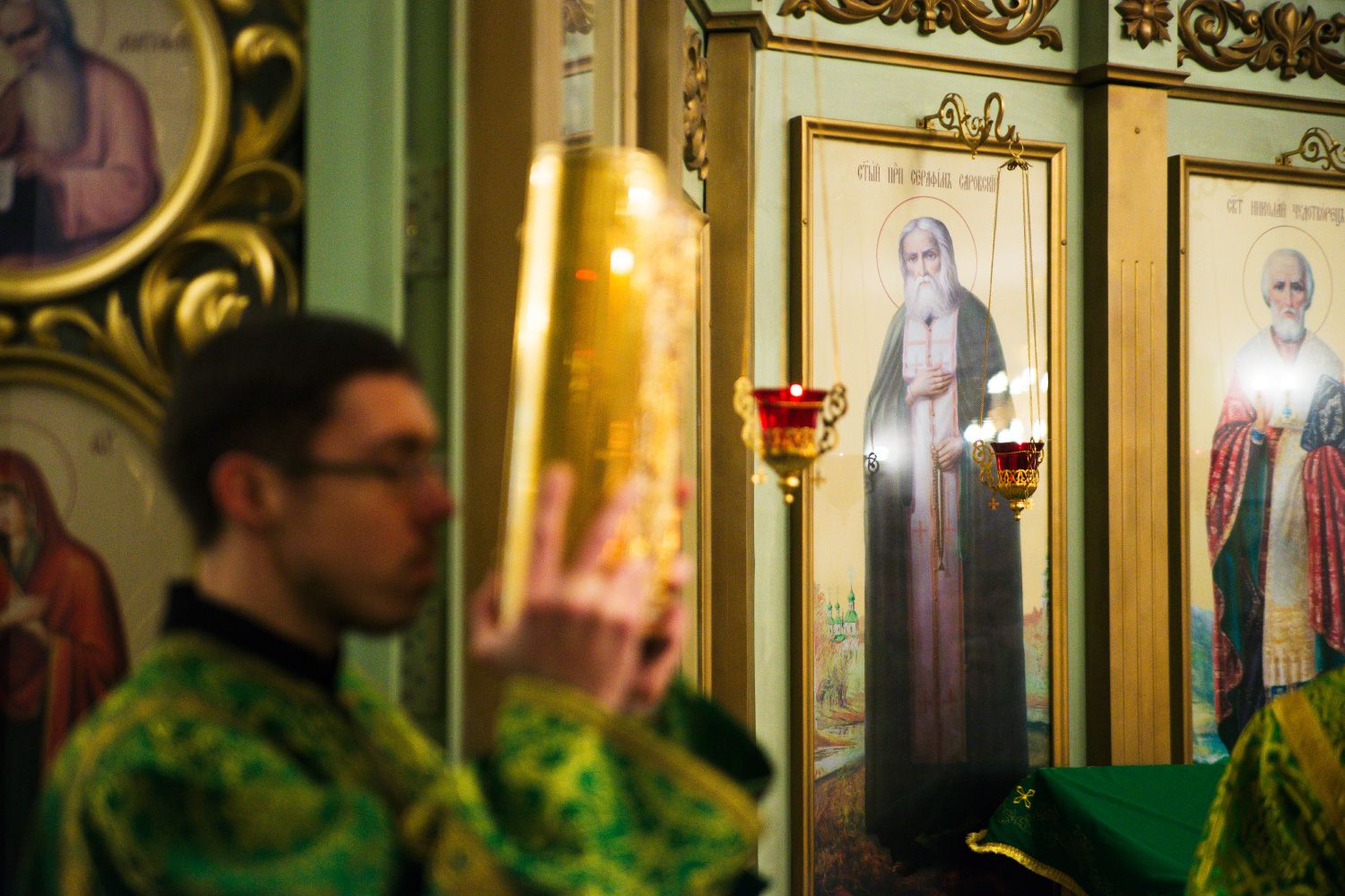 Позднюю Литургию возглавил настоятель прихода преподобного Серафима Саровского, председатель Отдела церковной благотворительности и социального служения Казанской епархии протоиерей Дмитрий Салков. Отцу Дмитрию сослужили клирики прихода. В завершение богослужения духовенством было совершено славление преподобному Серафиму Саровскому. Затем настоятель поздравил прихожан с престольным праздником и пожелал им в меру сил разделить молитвенный подвиг преподобного Серафима Саровского.
