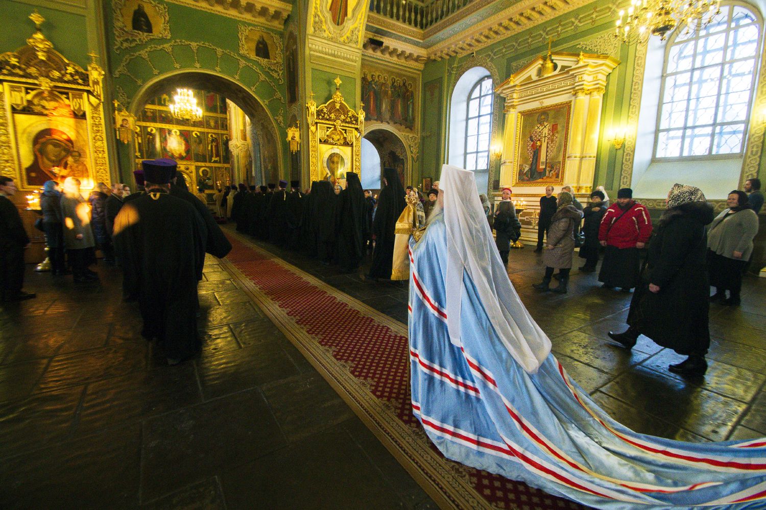 Главе Татарстанской митрополии сослужило духовенство города Казани.