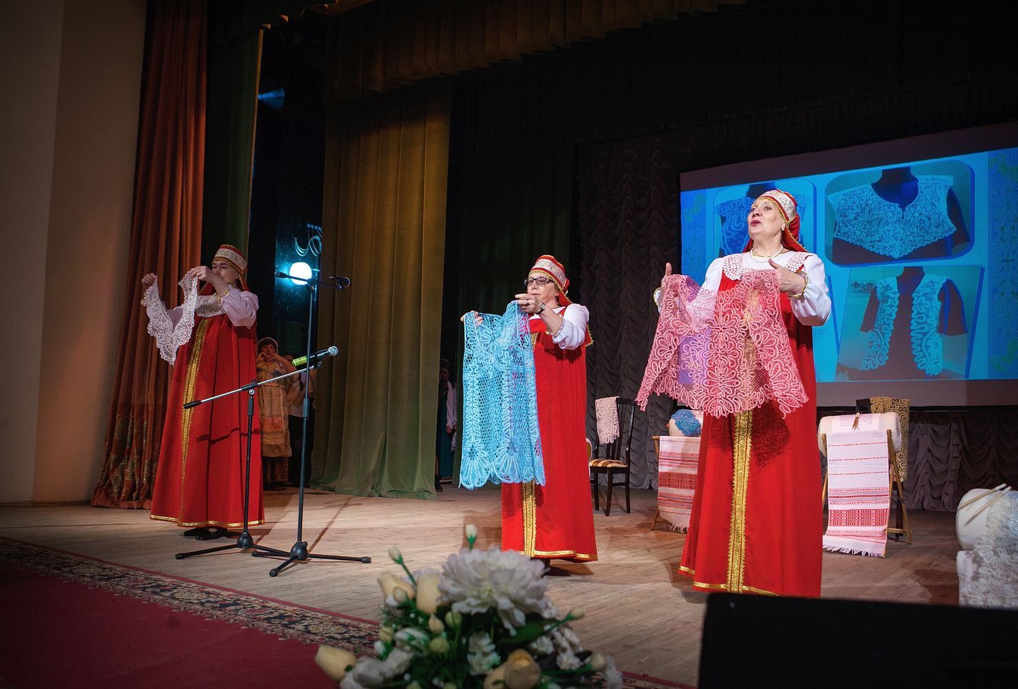 — Один из номеров был особенно примечательным, — рассказывает иерей Владимир Трушков, — мастерицы с матушкой настоятеля Казанского прихода поселка Рыбная Слобода на сцене воспроизвели историческую инсценировку, где зрители увидели и Императрицу, отметившую промысел рыбнослободских кружевниц, и самих мастериц с пением плетущих узоры на фоне реки, «раскинувшейся» по экрану за сценой, больших объемных рыб, выложенных на сцену во всей красе.