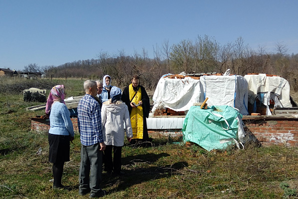 Затем священнослужители совершили панихиду, а на фундаменте будущего храма — молебное пение Пресвятой Богородице.