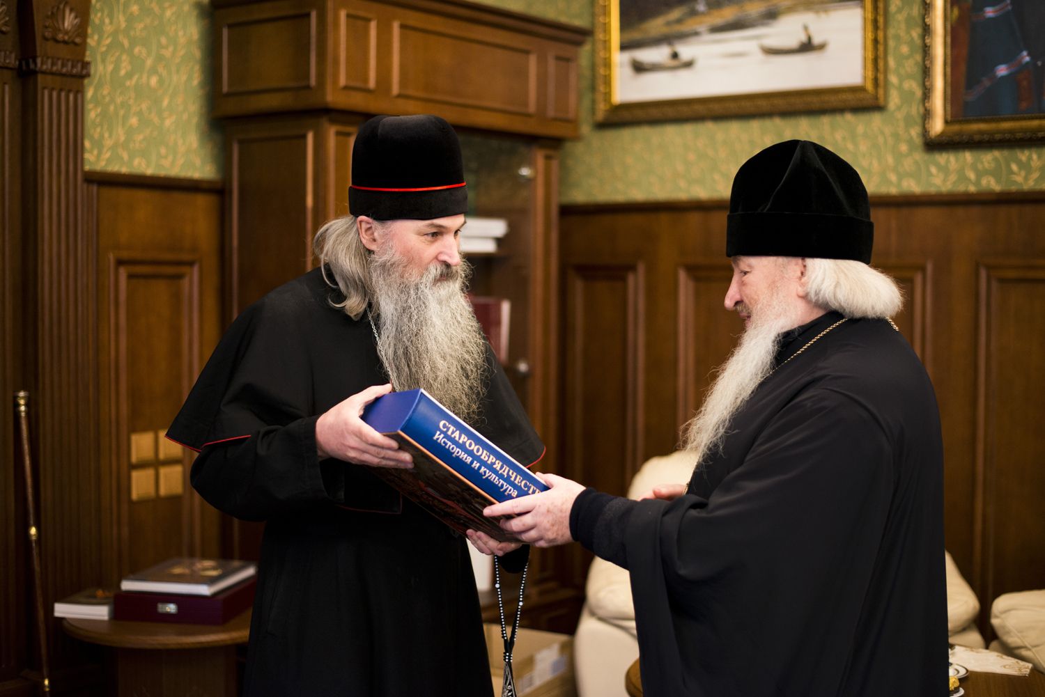 В начале встречи епископ Евфимий поздравил митрополита Феофана с 70-летием со дня рождения и подарил книгу об истории и культуре Старообрядческой Церкви.