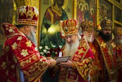 По завершении Литургии митрополит Варсонофий огласил поздравительный адрес Святейшего Патриарха Московского и всея Руси Кирилла митрополиту Феофану в связи с 70-летием со дня рождения и вручил Его Высокопреосвященству орден святителя Иннокентия, митрополита Московского и Коломенского, I степени.