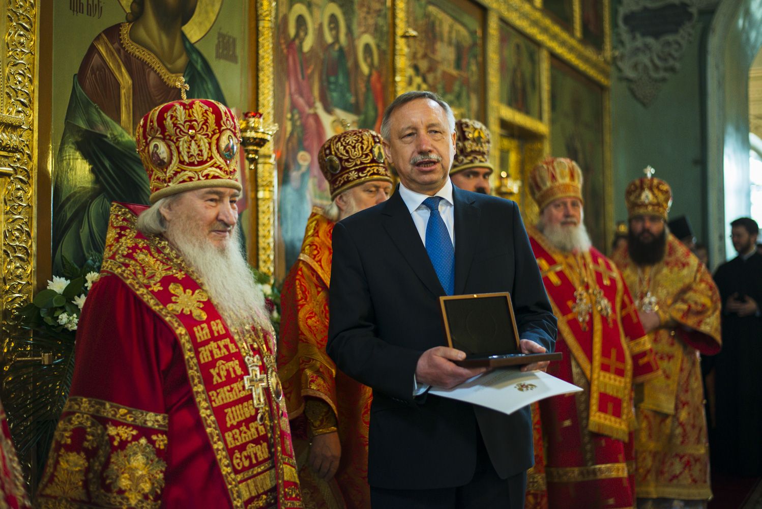 Я благодарю Вас, управляющего делами Московской Патриархии, постоянного члена Священного Синода, митрополита Санкт-Петербургского и Ладожского. Огромная ответственность лежит на Ваших плечах. Святейший Патриарх, конечно же, глава всех и над всеми, но есть конкретные люди, которые изо дня в день ведут кропотливую работу в жизни нашей Церкви. Огромное количество приходов, епархий, архиереев — и во всё и везде надо вникнуть, где-то помочь, где-то подсказать, а где-то и немножко подправить. Всё это лежит на Ваших плечах и мы знаем, с какой любовью и ответственностью Вы ко всем и ко всему относитесь.
