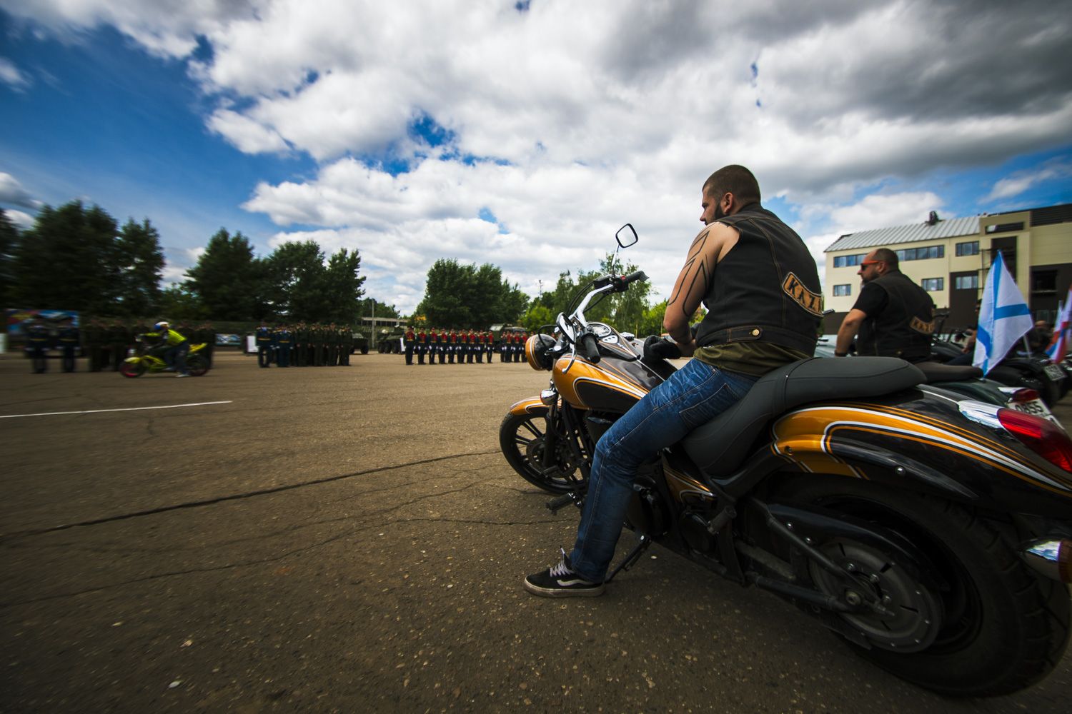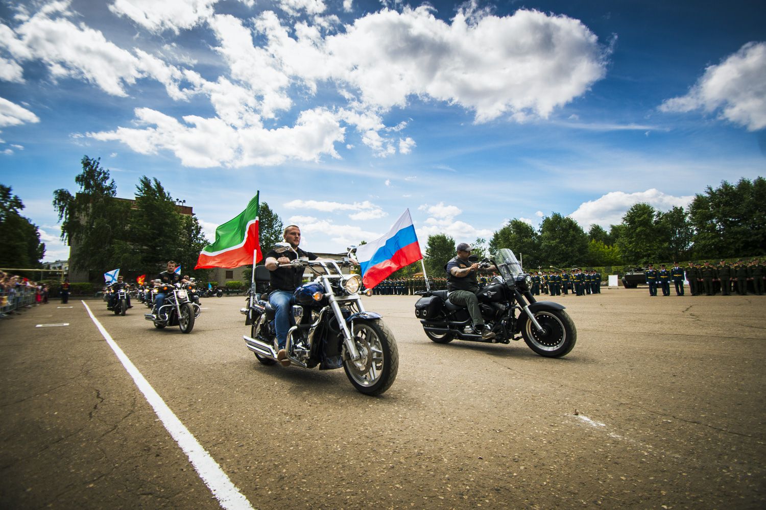 Вначале были вынесены флаги Российской Федерации и Республики Татарстан, боевое знамя училища.