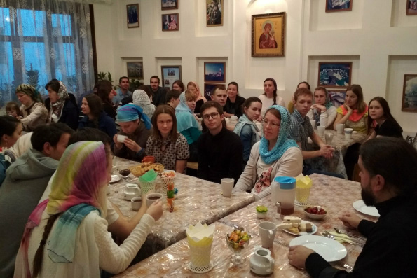 После молебна в трапезной храма состоялась беседа с настоятелем храма протоиереем Андреем Лосыком. Отец Андрей рассказал ребятам о значении семьи в современном обществе, призвав к верной и чистой любви. Также он поделился воспоминаниями о знакомстве со своей супругой, рассказал о своей семье, детях и личном пути к Богу. Молодые люди задавали священнику вопросы, касающиеся семейных отношений, и получали на них развернутые ответы. Прошедшее мероприятие ребятам очень понравилось, и они надеются, что подобные встречи будут проходить регулярно.