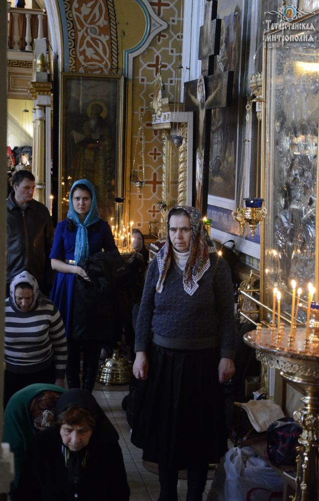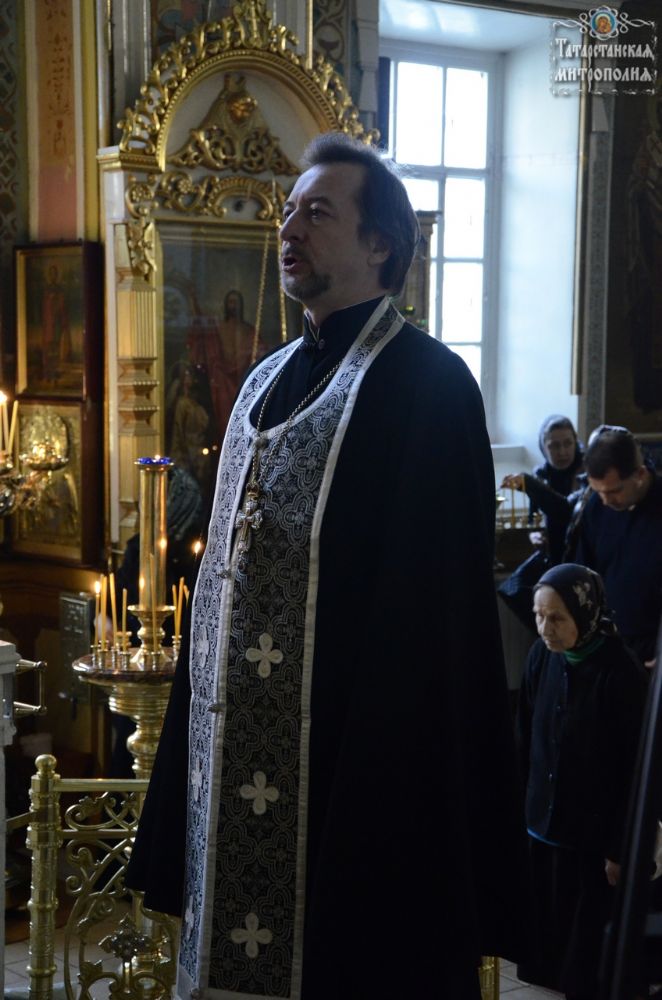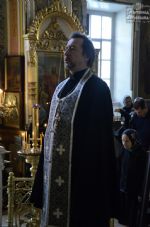 В богослужении принял участие настоятель собора протоиерей Иоанн Барсуков и клирики собора. По завершении Великого повечерия протоиерей Иоанн рассказал молящимся о причащении в дни Святой Четыредесятницы.