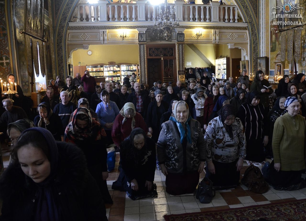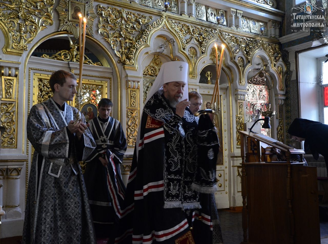 Вечером этого дня преосвященный Владыка посетил Никольский кафедральный собор г. Казани, где совершил Великое повечерие с чтением второй части Великого покаянного канона прп. Андрея Критского. За богослужением пел хор смешанный хор под управлением Николая Белявина.