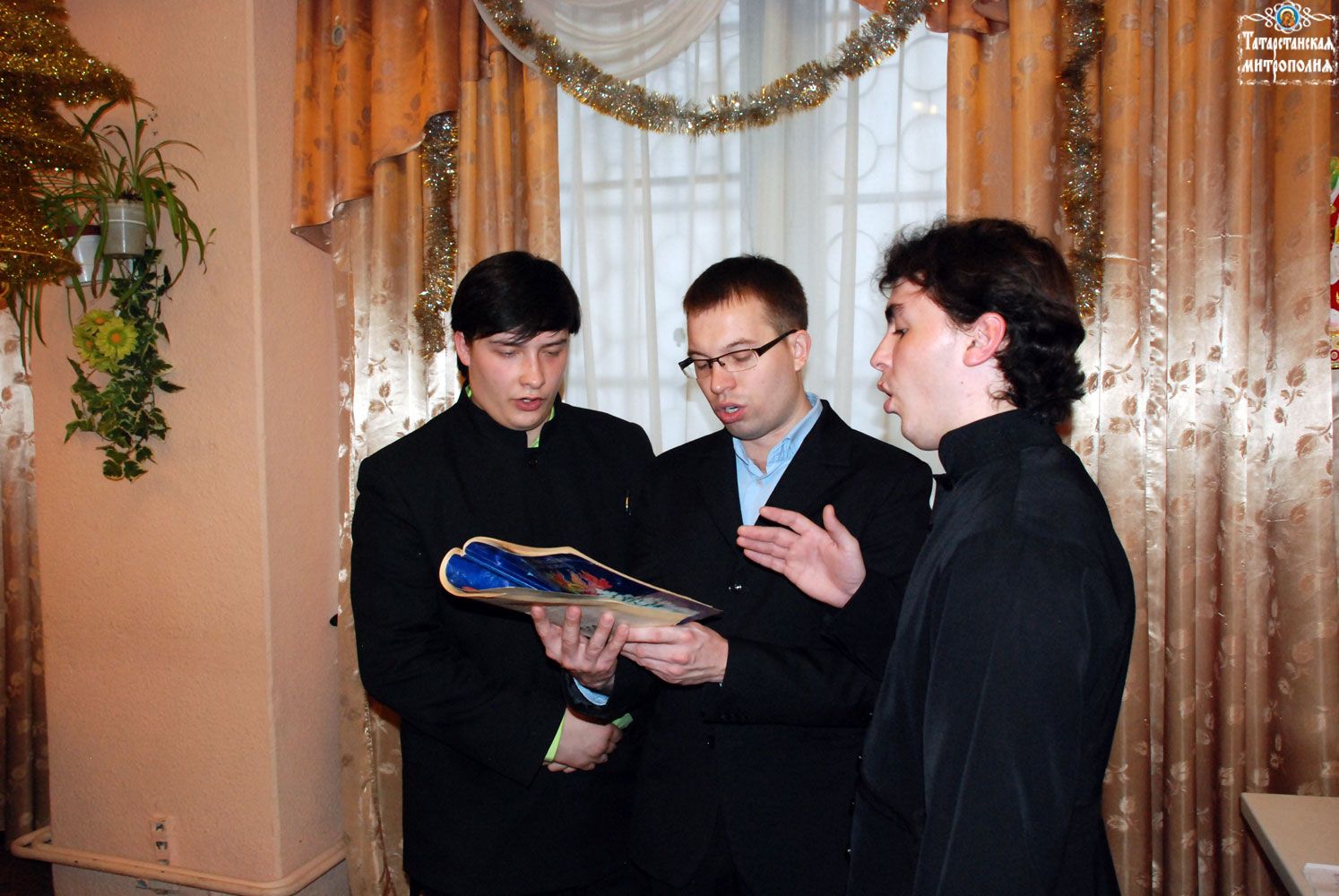 В этом году встреча для людей с ограниченным зрением состоялась 10 января в Культурно-Спортивном комплексе общества слепых. По благословению управляющего Татарстанской митрополией митрополита Казанского и Татарстанского Анастасия поздравить собравшихся пришли клирик храма в честь св. прав. Иоанна Кронштадтского при Казанской духовной семинарии иерей Вячеслав Еременко и воспитанники духовной школы.