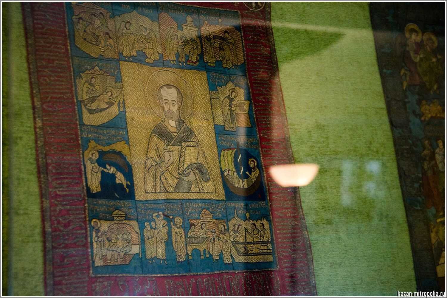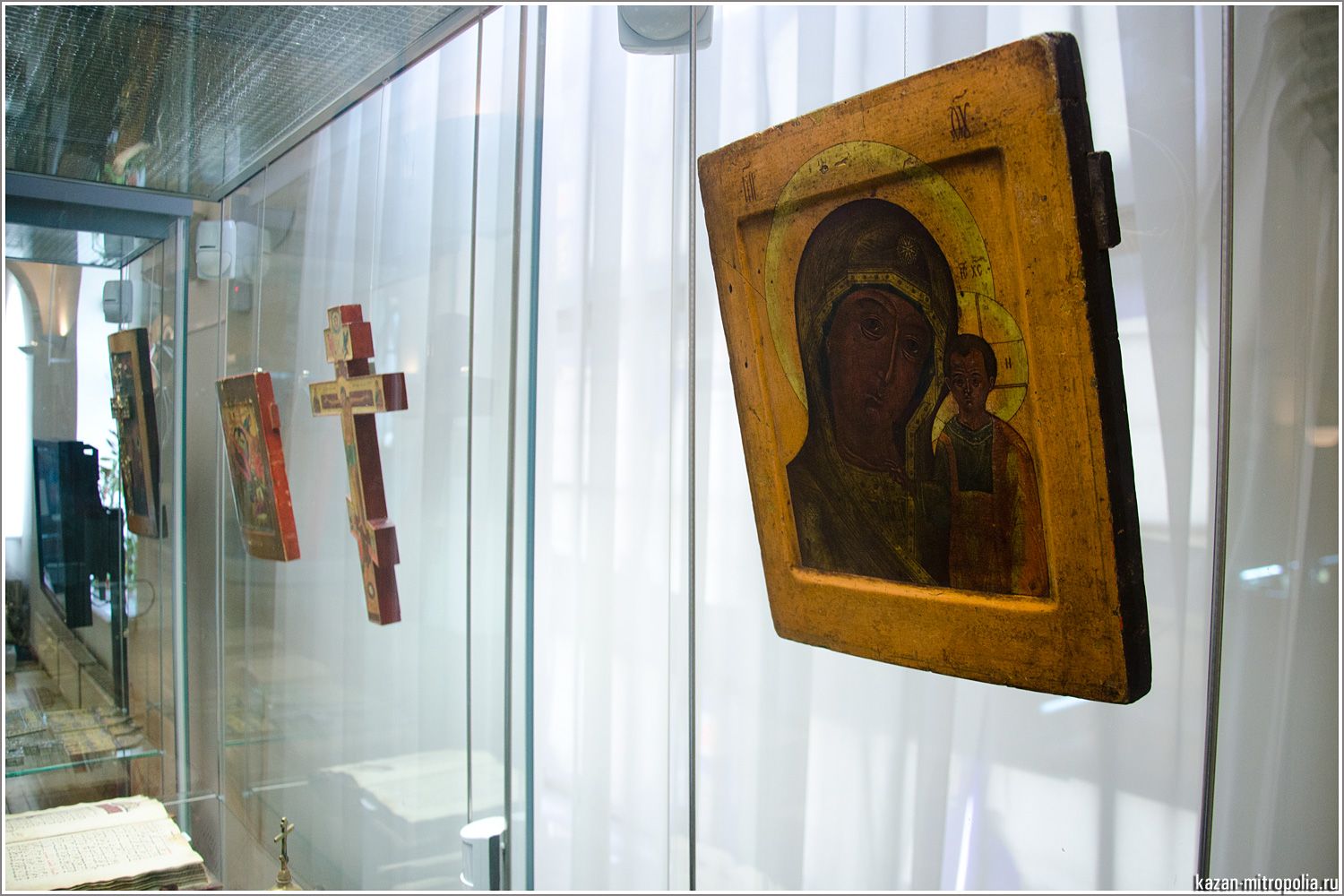 Видное место на выставке занимают экспонаты, связанные с Казанской иконой Божией Матери. Среди них — уникальные произведения последней трети XVI века: пелена к иконе, книга «Служба явлению Казанской иконы Божией Матери» — сборник, часть которого была напечатана в казанской анонимной типографии.