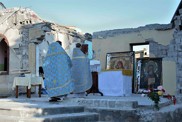 Единственный в городе православный храм, освященный во имя св. прав. Иоанна Кронштадтского был полностью разрушен во время артиллерийского обстрела в августе прошлого года. Один из снарядов попал в здание церкви прямо во время всенощного бдения. Три человека погибли на месте, несколько человек, включая одного из священнослужителей, получили серьезные ранения и были доставлены в больницы.