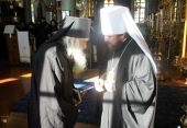 В праздник Сретения Господня митрополит Волоколамский Иларион совершил Божественную литургию в афонском монастыре Ватопед