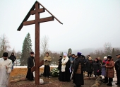 Митрополит Новгородский и Старорусский Лев освятил памятный крест на месте трагедии в психоневрологическом центре «Оксочи»