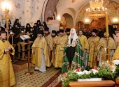В день памяти святого благоверного князя Александра Невского Святейший Патриарх Кирилл совершил Литургию в Троицком Александро-Невском монастыре в с. Акатово Московской области