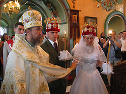 Когда священник спрашивает жениха и невесту, обещают ли они любить и беречь друг друга, хранить друг другу верность, добровольно ли они возлагают на себя узы брака, а те отвечают согласием, то они дают обещание не стоящему перед ними священнослужителю, а Богу и Церкви. В конце таинства священник, держа новобрачных за руки, трижды обводит их вокруг аналоя: это и путь, который благословленная Церковью новая семья совершает ко Христу и вечной жизни с Ним, и тот крестный путь, которым прошел Христос.