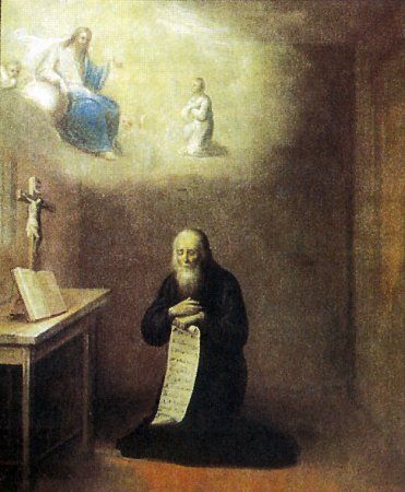 В это время пришла бесноватая женщина, наказанная преподобным за нарушение тайны его подвига. Прикоснувшись к телу святого, она исцелилась и рассказала народу обо всем, случившемся с нею.
